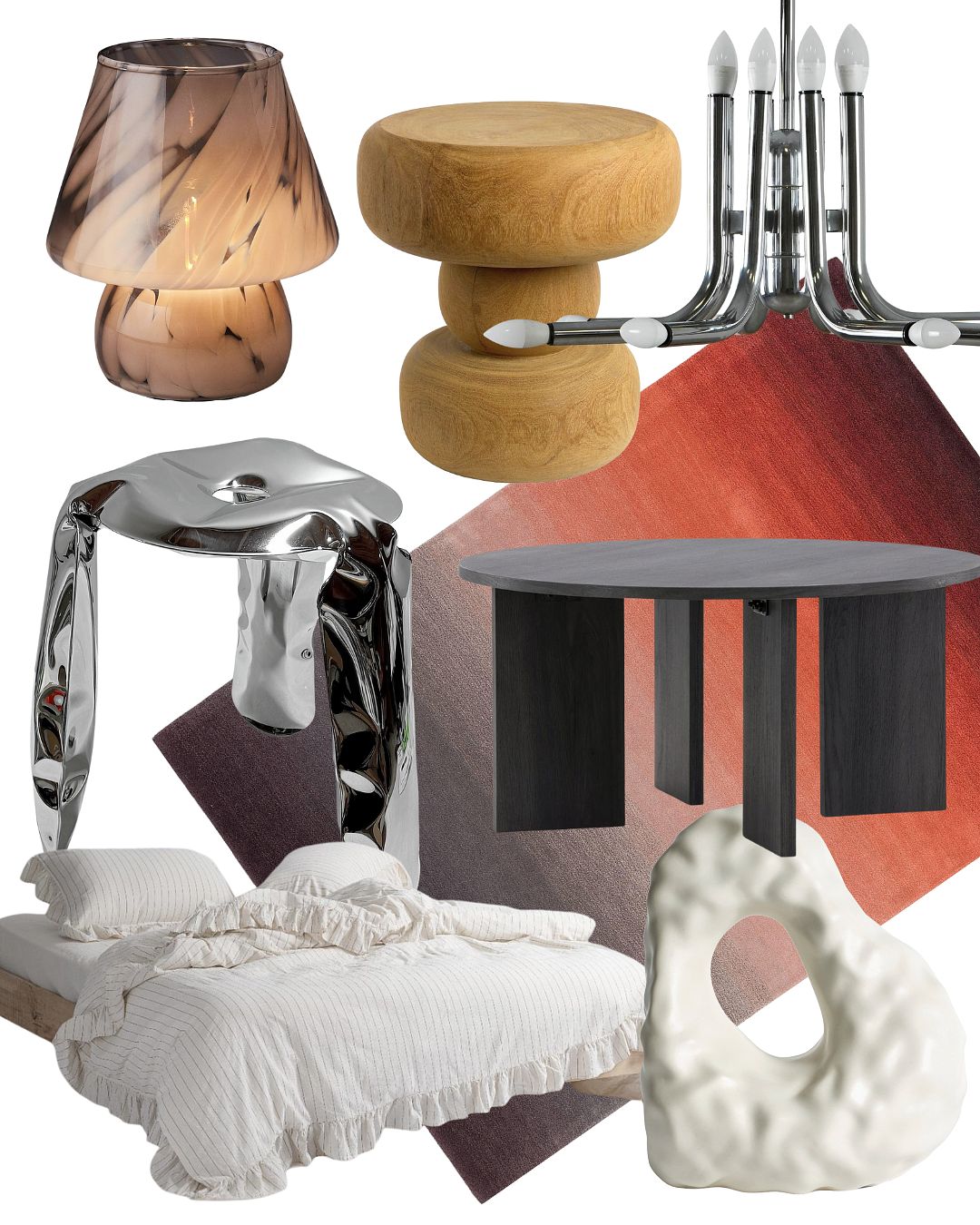 • Sculptural Furniture: Curved, organic shapes in sofas, chairs, and tables