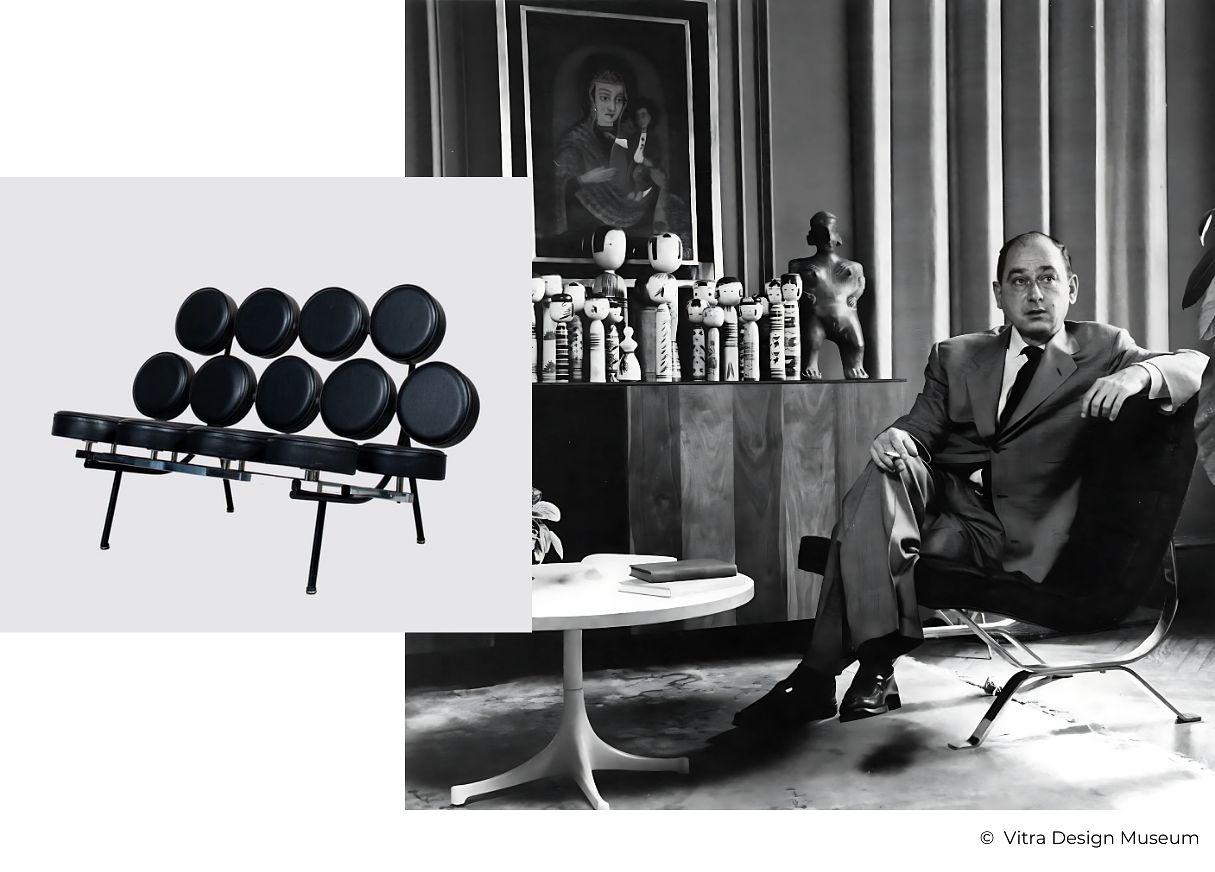 Zusätzlich zu dem Marshmallow Sofa war Nelsons Ball Clock eine verspielte Interpretation von Zeitmessern. Ihr verspieltes, skulpturales Design war eine Verkörperung der überschwänglichen Atmosphäre jener Zeit. Diese Uhr, wie auch seine anderen Kreationen, zeigte Nelsons Überzeugung, dass Design zugänglich, funktional und angenehm sein sollte. Sein Beitrag zur amerikanischen Designlandschaft ist eng mit Herman Miller verbunden, wo er eine entscheidende Rolle bei der Gestaltung der Markenidentität spielte.