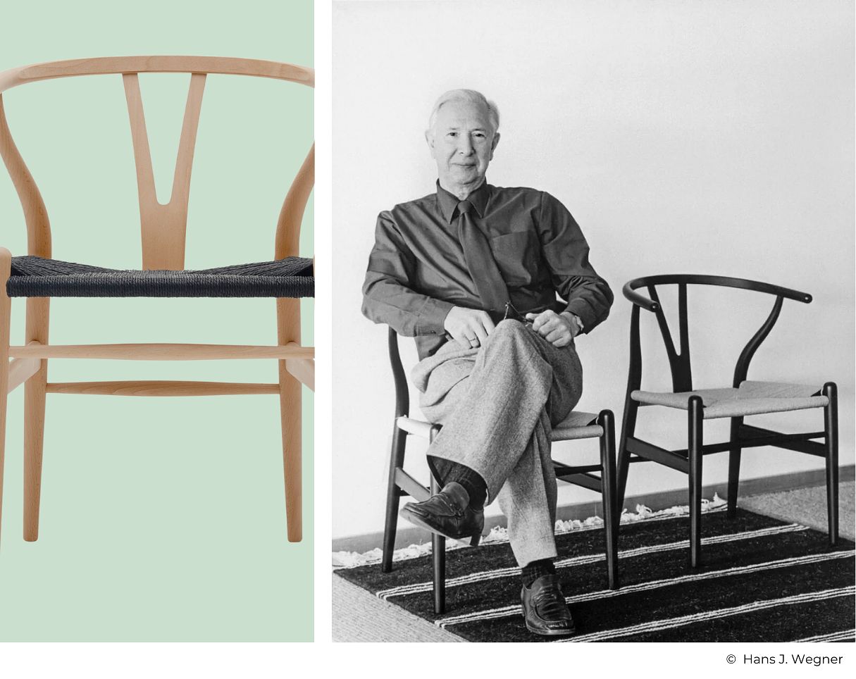 Wegners wegweisende Realisierung in den Fünfzigern war der Wishbone Chair, auch bekannt als Y Chair. Er vereint Form und Funktion nahtlos. Die Y-förmige Rückenlehne und die gebogenen hinteren Beine des Stuhls bieten sowohl Stabilität als auch ästhetischen Reiz, wobei Form und Funktion nahtlos verbunden sind. Wegners Besessenheit von Handwerkskunst zeigt sich im handgewebten Papierkordelsitz des Stuhls, was ein Zeugnis seiner Hingabe zur Qualität ist. Der Wishbone Chair bleibt ein Symbol für dänisches Design, das Schlichtheit und Raffinesse miteinander verbindet.