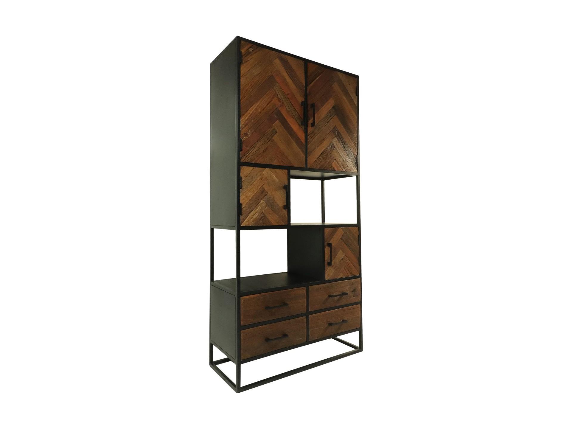 Dieser Verona Wandschrank hat eine wunderschöne Kombination aus altem Holz und Metall. Die Türen sind mit einem Fischgrätmuster versehen. Dieser luxuriöse Schrank steht fantastisch in einem modernen und industriellen Interieur. Stell ihn doch im Wohnzimmer mit schönen Accessoires oder Büchern auf. Er hat 4 Türen und 4 Schubladen mit schönem hölzernen Fischgrätmuster für extra Details. Absolut einer unserer Favoriten.