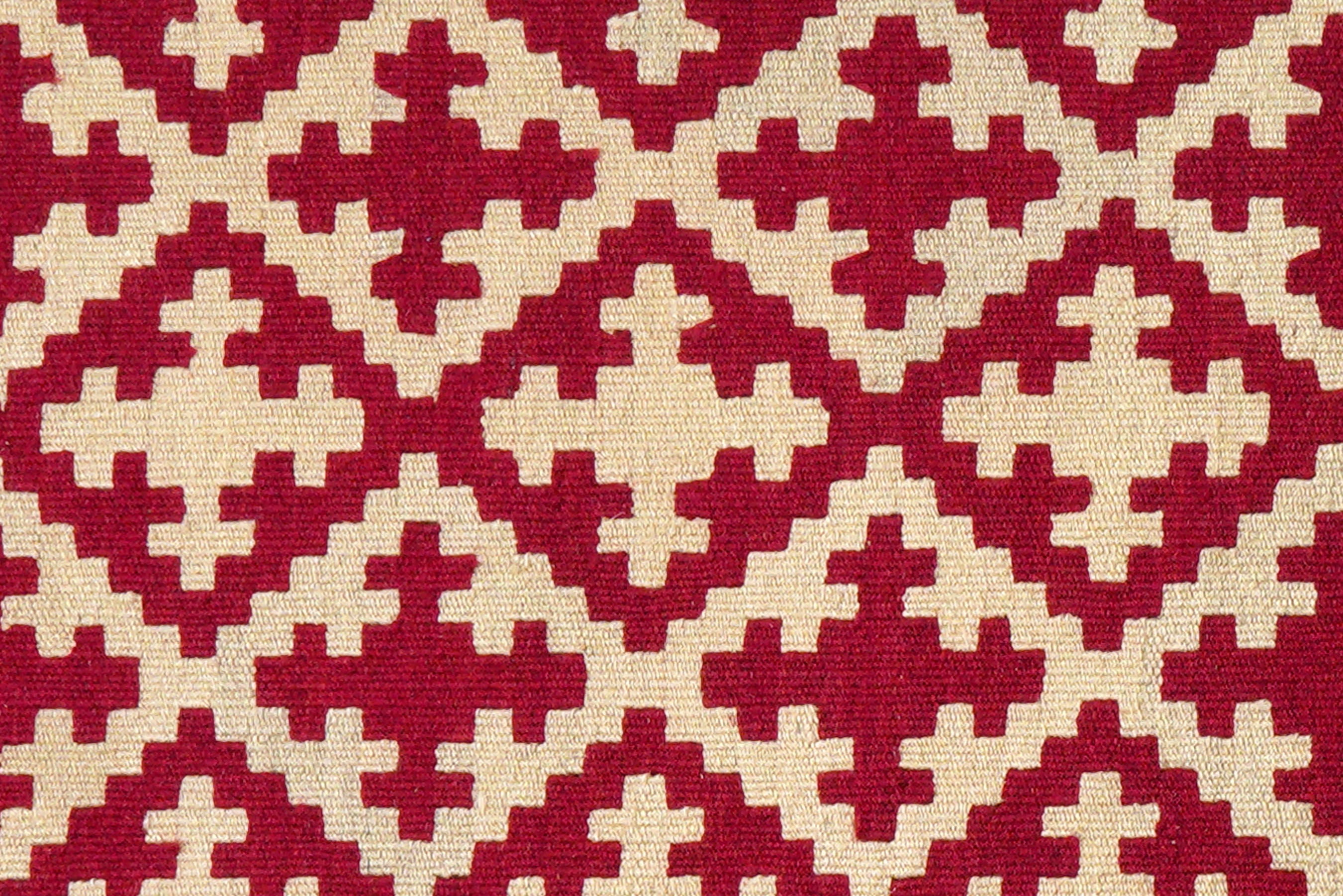 Die Gashgai sind türkisch sprechende nomadische Stämme, die in der Region um Shiraz im Südwestiran leben. Kilims sind beidseitig verwendbare, flache Wollteppiche mit einem typischen Schlitzgewebe. Dies bedeutet, dass der Schuss Schlitze hat, in dem sich die Farben ändern. Die Teppiche weisen klassische Gashgai-Motive wie Rhomben, Quadrate, Streifen und kaukasische Sternmotive auf. Farben wie Blau, Gelb, Rot, Grün und Beige werden verwendet.