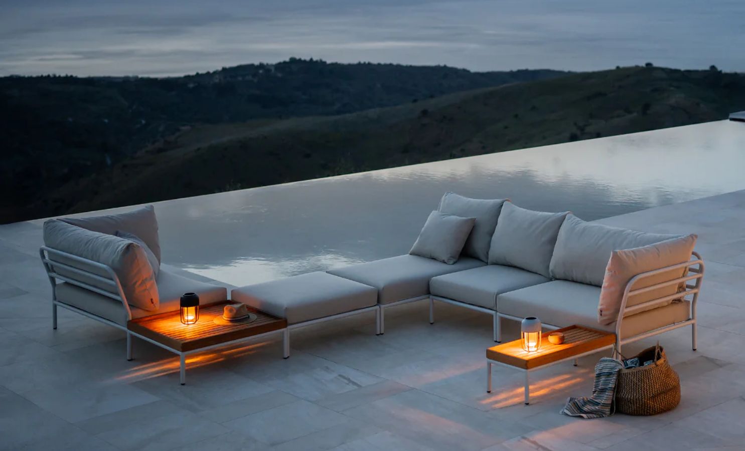 Einladende Ecken mit Loungemöbeln, Beistelltischen und kuscheligen Kissen laden dazu ein, den Sommer in vollen Zügen zu genießen.