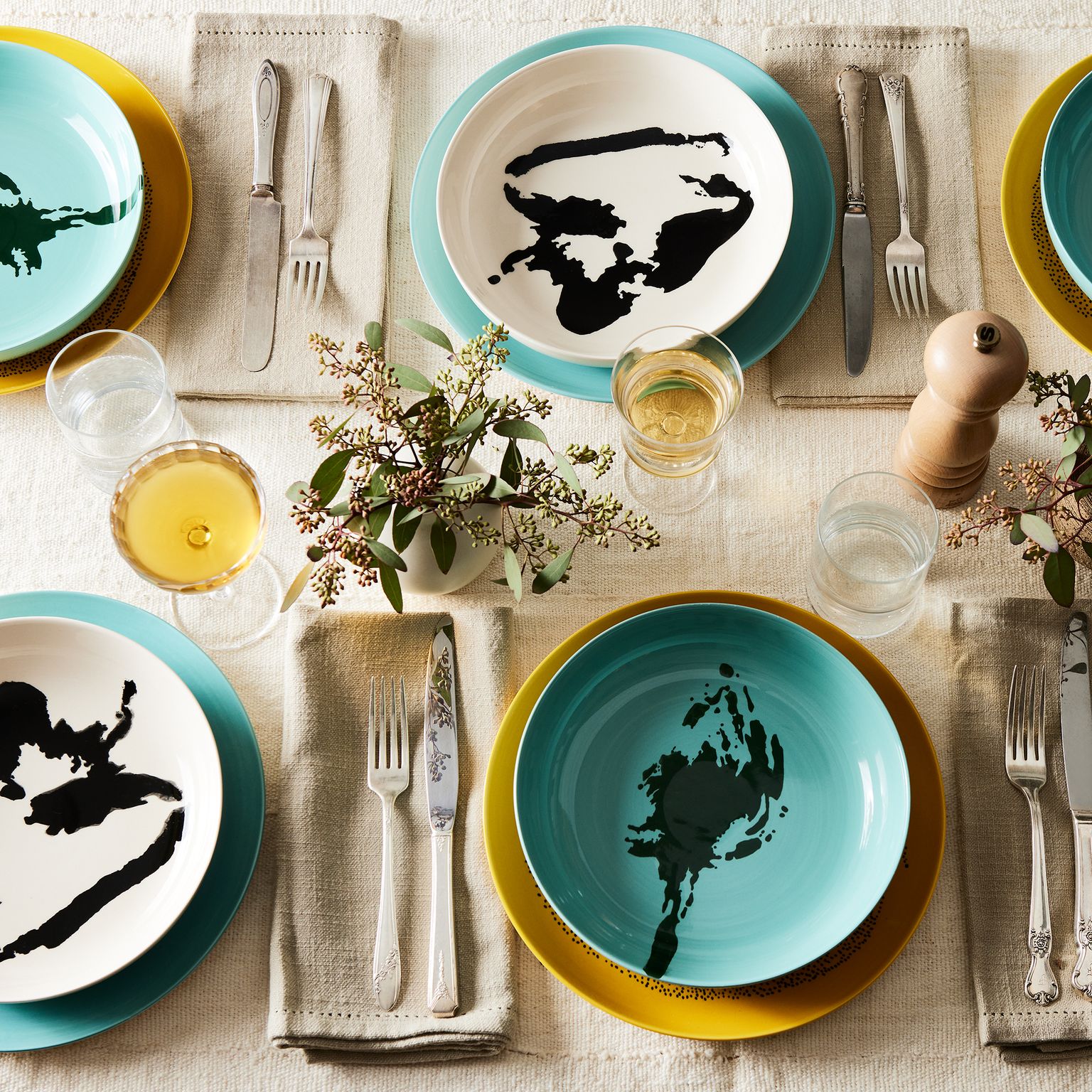 Für einen klassischen Look wähle Porzellanteller mit einem dezenten Dekor oder einer gold- oder silberfarbenen Umrandung. Wenn du einen rustikalen Stil bevorzugst, dann kannst du dich für handgefertigte Keramikteller mit einer unebenen Textur entscheiden. Für eine moderne Note sind klare Glas- oder Steinteller eine elegante Wahl. Schüsseln bieten auch eine schöne Alternative zu Tellern, wenn du diese bevorzugst.