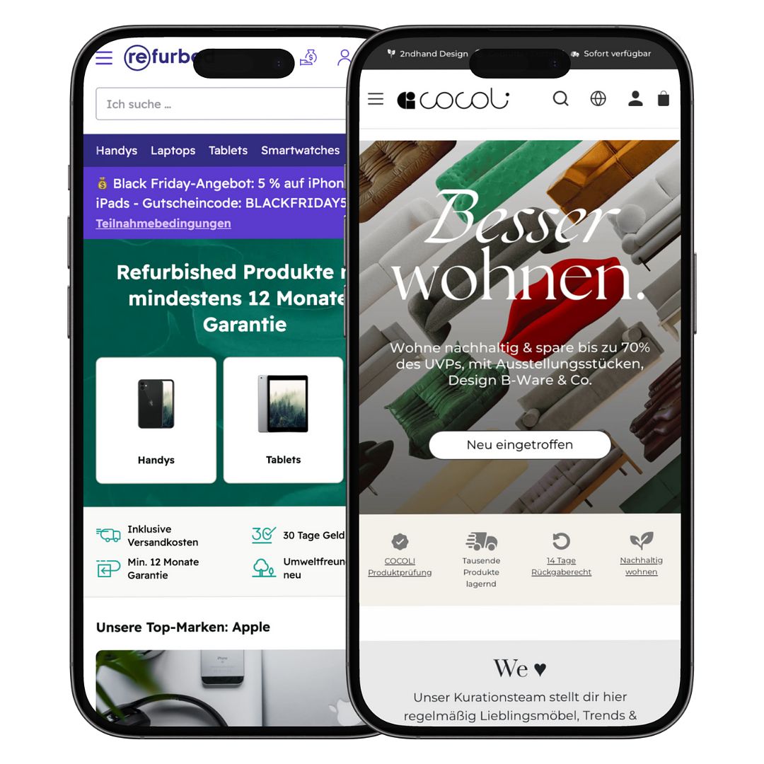refurbed bietet mit seinem One-Stop-Marktplatz die Möglichkeit, rundum erneuerte (elektronische) Geräte nachhaltiger zu kaufen, indem die Nutzungsdauer der Geräte durch Refurbishment professionell deutlich verlängert wird: Die Geräte werden eingehend überprüft, alle auf dem Gerät befindlichen Daten professionell gelöscht, defekte Komponenten ausgetauscht und das Gesamt-Erscheinungsbild äußerlich aufbereitet