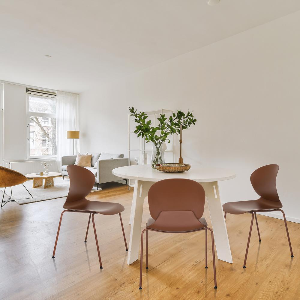 Ein großer Vorteil von Mocha Mousse ist seine Vielseitigkeit. Der warme Braunton harmoniert nicht nur hervorragend mit anderen Erdtönen wie Terrakotta oder Sand, sondern lässt sich auch wunderbar mit kühleren Nuancen wie Grau oder Blau kombinieren. Ein Wohnzimmer mit Mocha-Mousse-Möbeln und blauen Akzenten wirkt modern und stilbewusst, während Braun in Kombination mit Creme und Grün eine beruhigende, natürliche Atmosphäre schafft.