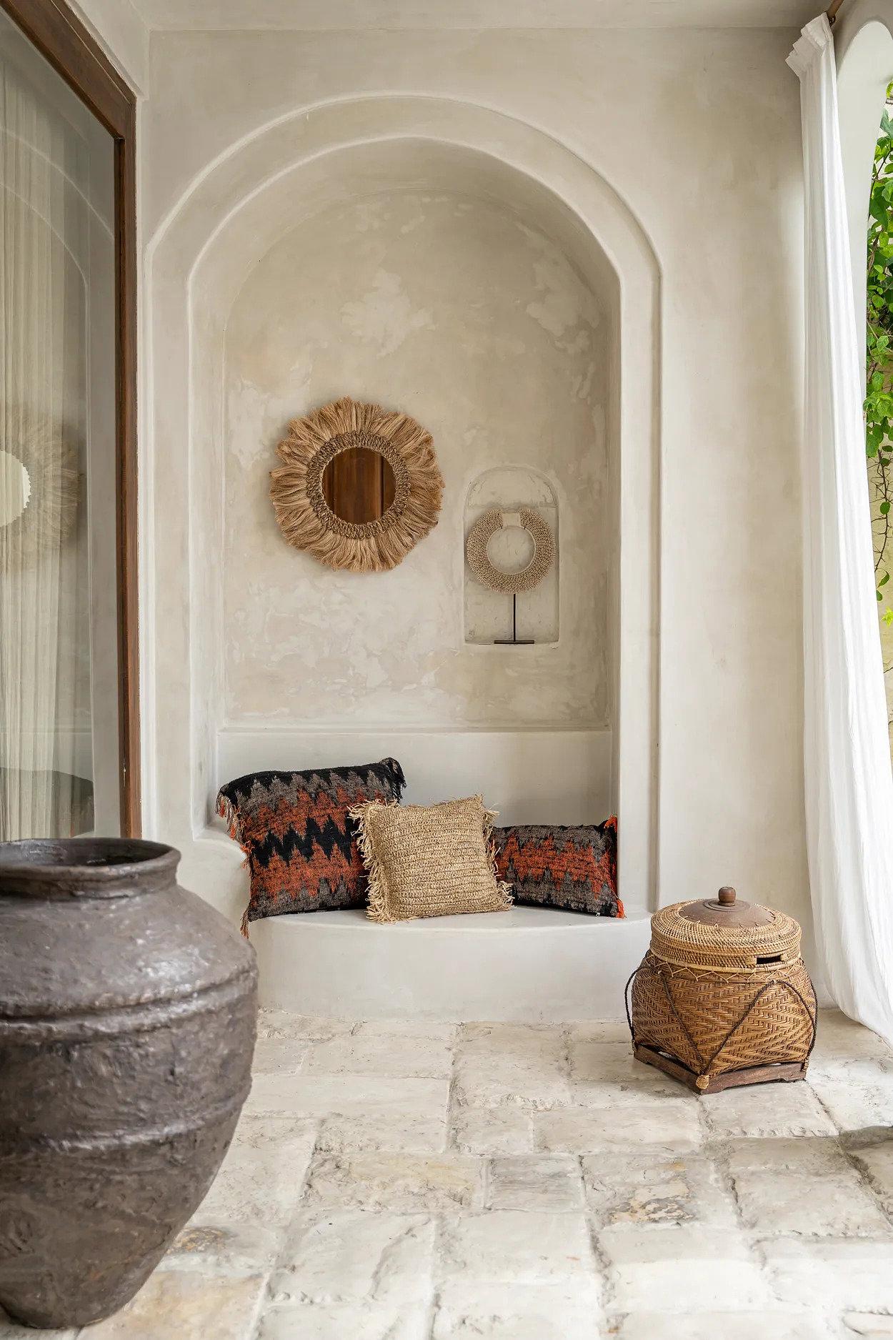 Ergänze sie mit passenden Kissen in warmen Herbstfarben, und du hast eine gemütliche Sitzgelegenheit, die zum Entspannen einlädt. Die haptische Qualität von Vintage-Textilien verleiht deiner Dekoration Tiefe und Wärme, und schafft eine beruhigende Umgebung.