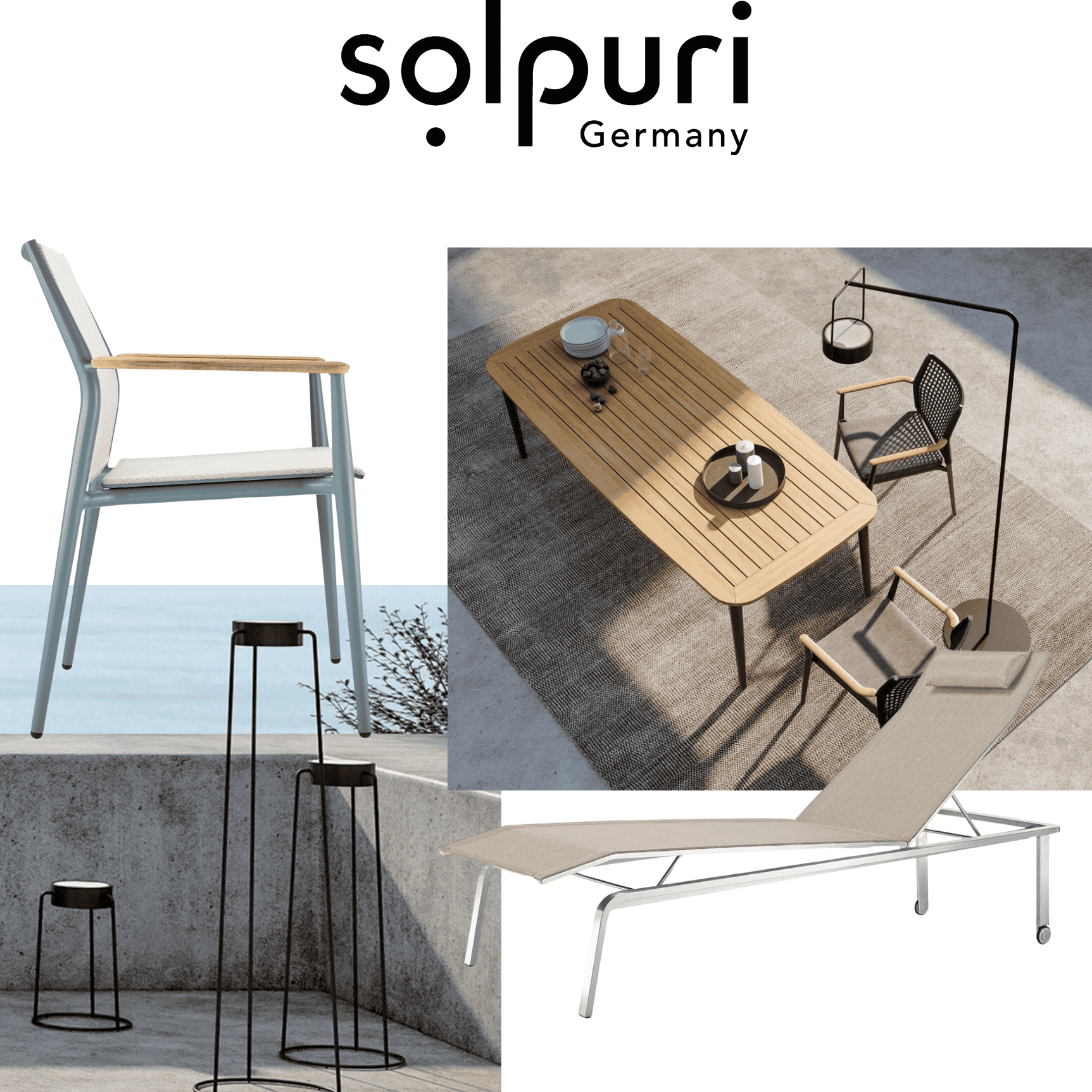 solpuri is a German outdoor brand that combines timeless design, high comfort and sustainable materials. Inspired by the Bauhaus style, durable furniture is created for stylish outdoor spaces – fair, recyclable and with high-quality craftsmanship. At COCOLI you will find, among other things, discontinued models from solpuri that are no longer in production, in mint condition.