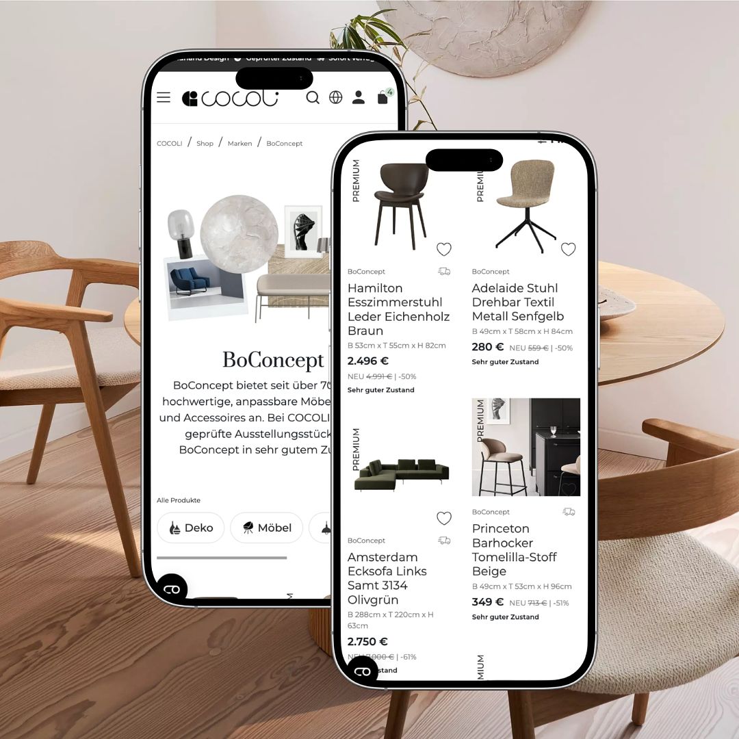 This is where COCOLI comes in. The online marketplace for sustainable designer furniture offers BoConcept pieces as B-stock, returns, second-hand or vintage products. Small blemishes are allowed – the quality remains. This gives furniture a second life instead of simply being discarded.