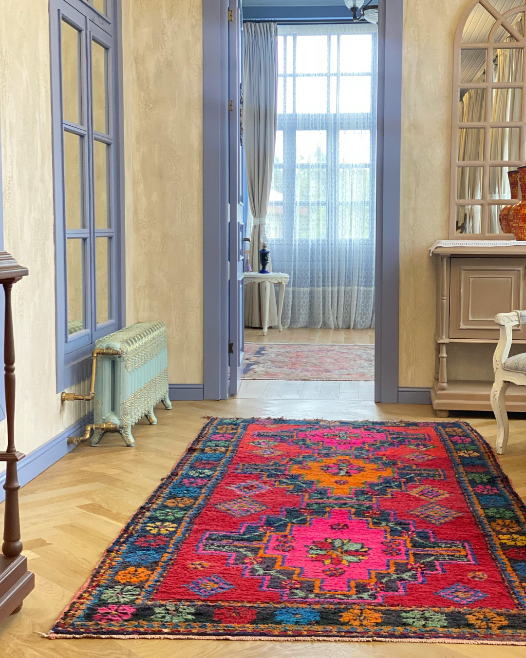 Whether in a Scandinavian living room, an urban loft or a Mediterranean holiday home – kilim rugs are incredibly versatile. Their clean lines, geometric patterns and natural colour palette blend effortlessly into many interior styles. They pair especially well with Scandinavian design, which focuses on bright tones, natural materials and calm atmospheres.