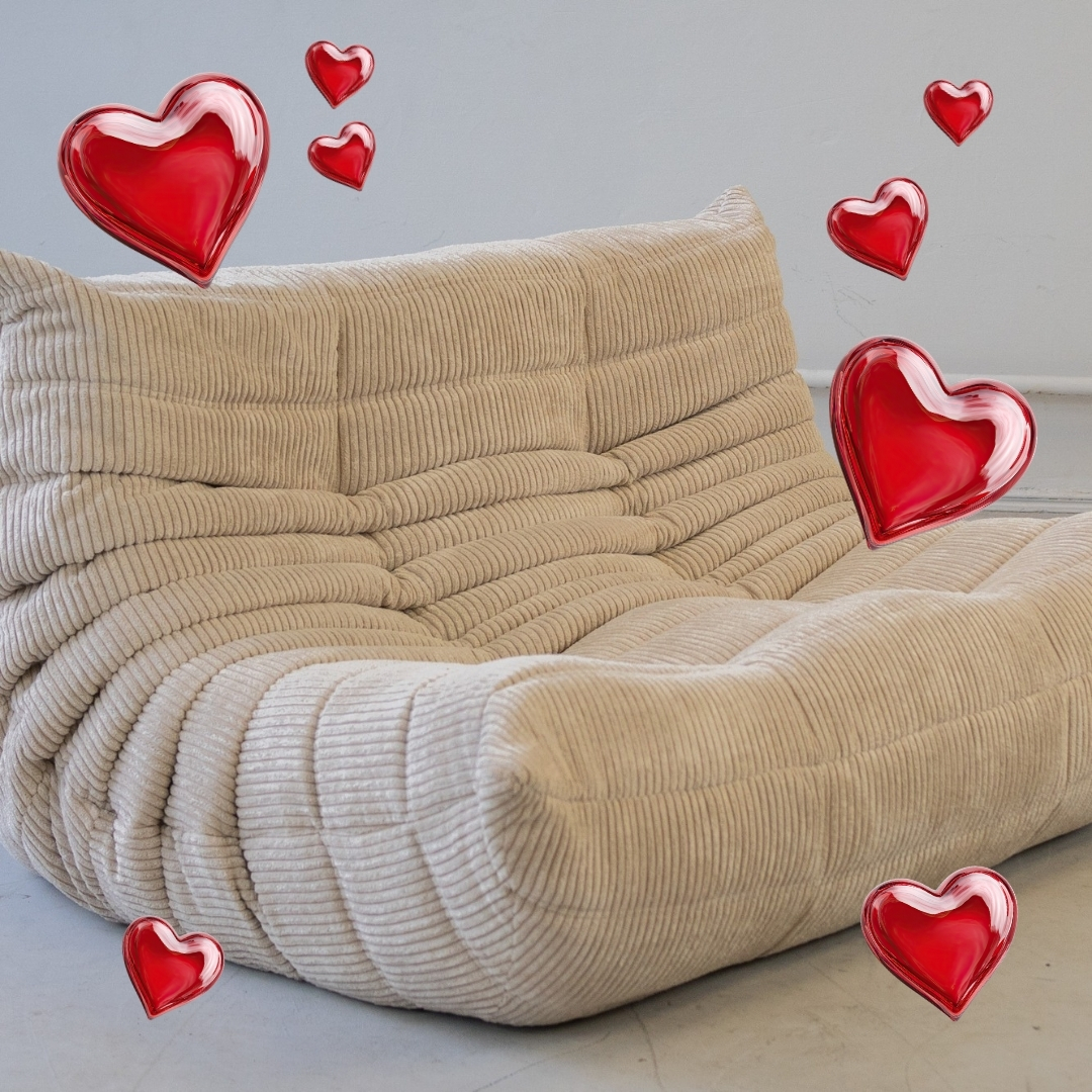 Particolarmente amato: il Togo vintage, rivestito in velluto a coste beige. Un vero pezzo forte, andato subito a ruba e che ha conquistato tutti i cuori!